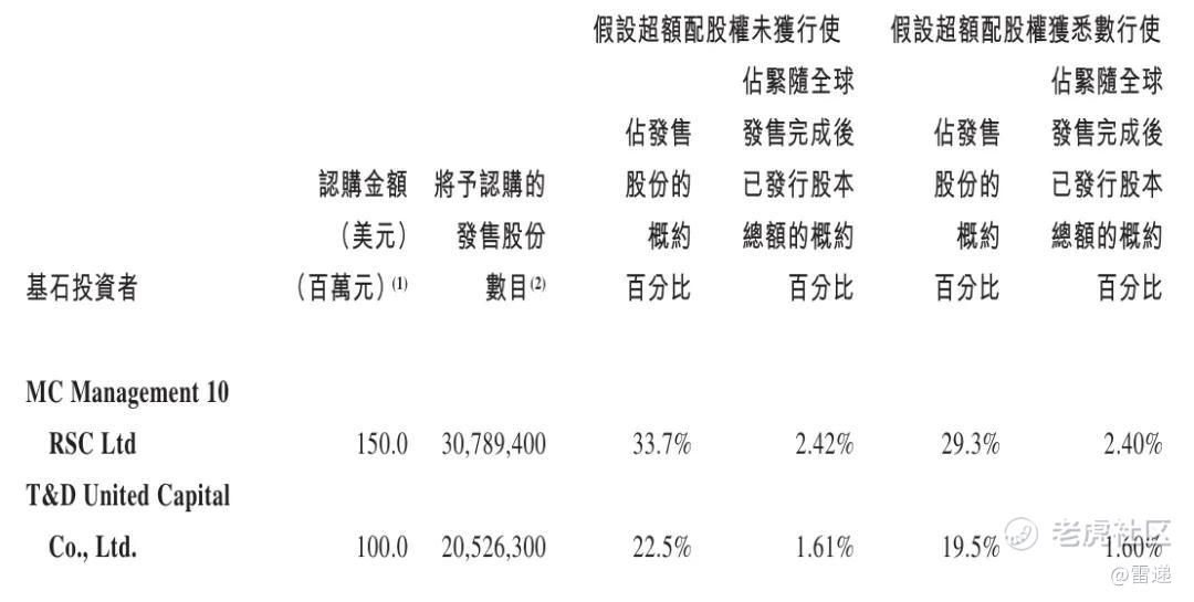 其中,基石投资者MC Management 10 RSC认购1.5亿美元,T&D United Capital Co认购1亿美元。