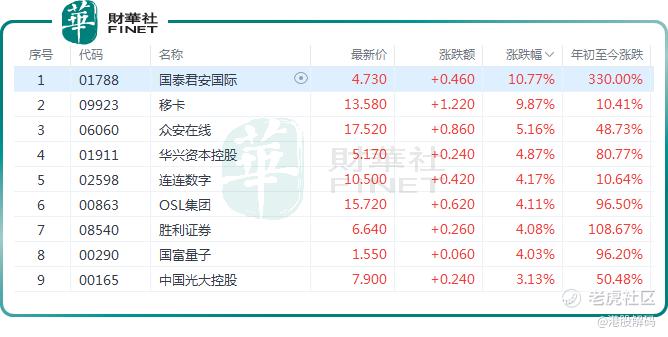 7月7日,港股稳定币概念股集体走高。截至收盘, $国泰君安国际(01788)$ 涨10.77%, $移卡(09923)$ 涨9.87%, $众安在线(06060)$ 涨5.16%, $连连数字(02598)$ 、 $OSL集团(00863)$ 、胜利证券(08540.HK)分别上涨4.17%、4.11%、4.08%。