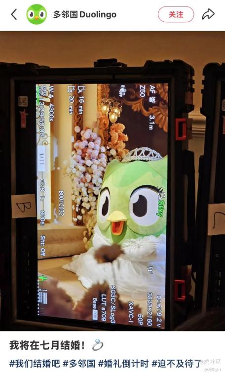 6月30日,多邻国官方小红书账号发布了一则“我将在7月结婚”的动态。这是继2月份多邻国宣布品牌形象玩偶猫头鹰多儿去世后又一次“拟人化”的营销手笔。