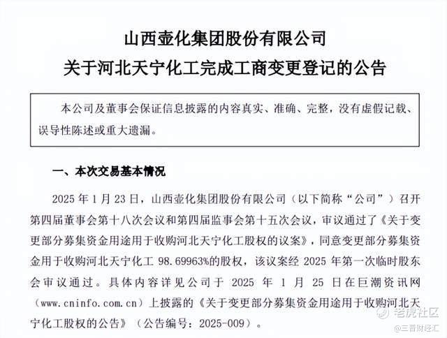 公告显示,公司近期完成了对河北天宁化工98.69963%股权的收购,该公司已成为壶化股份的控股子公司。天宁化工拥有炸药产能3.6万吨,此次收购将助力壶化股份炸药总产能增至11.4万吨。