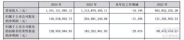 2024年,壶化股份业绩遭遇营利“双降”,实现营收11.01亿元,同比下降16.19%;归母净利润1.4亿元,大幅下滑31.59%。