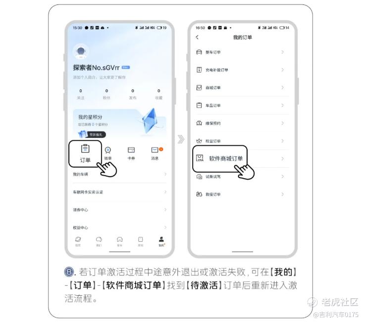 8. 若订单激活过程中途意外退出或激活失败,可在【我的】-【订单】-【软件商城订单】找到【待激活】订单后重新进入激活流程。