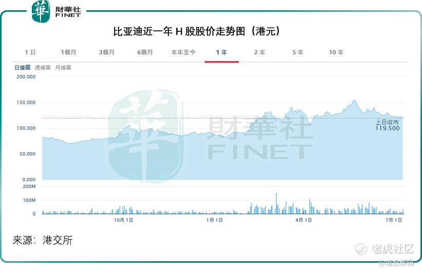比亚迪于今年6月10日派发末期息3.974元人民币,每10股送8股红股,每10股转增12股,因此股价已作复权处理,但可以看出其于5月下旬创下股价新高。