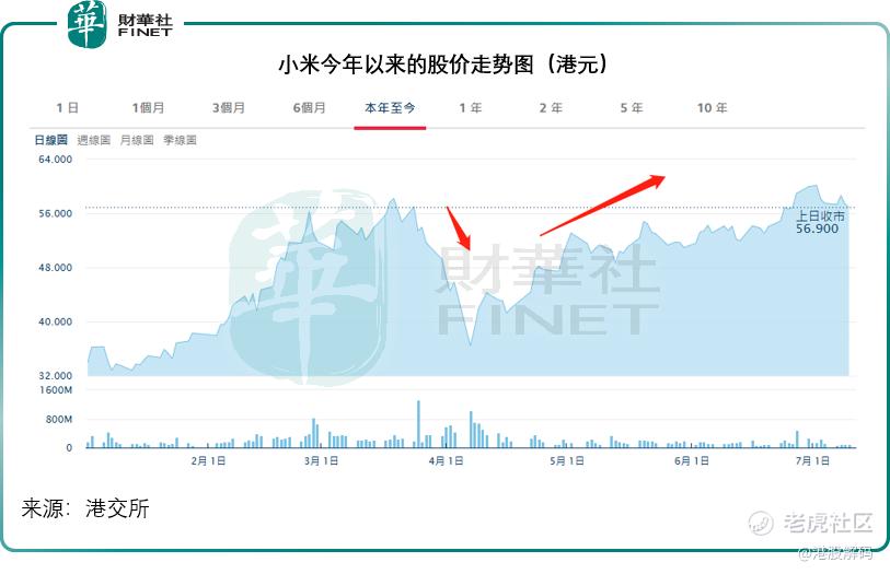 小米在配售完成后,因为NOA智能辅助驾驶状态下的小米SU7意外和SU7 Ultra的碳纤维前舱盖事件,股价一度下挫,但很快收复失地,并于7月初再创新高,见下图。