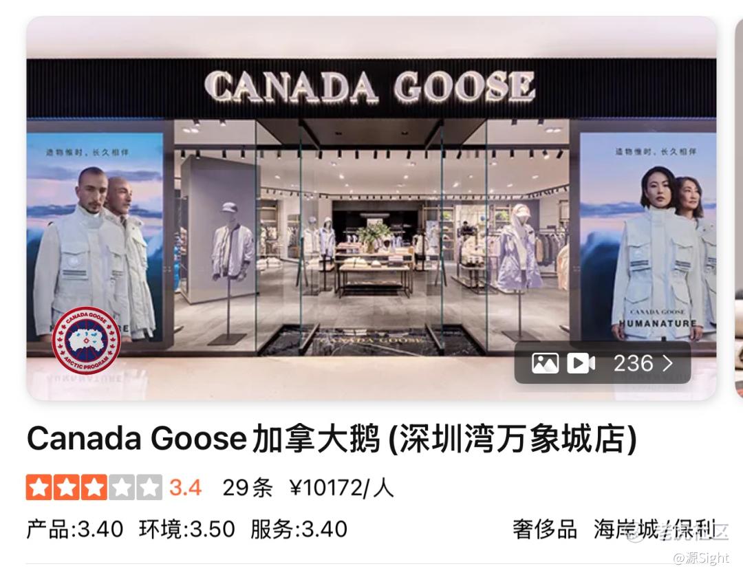 加拿大鹅中国线下门店 | 截图来源于大众点评