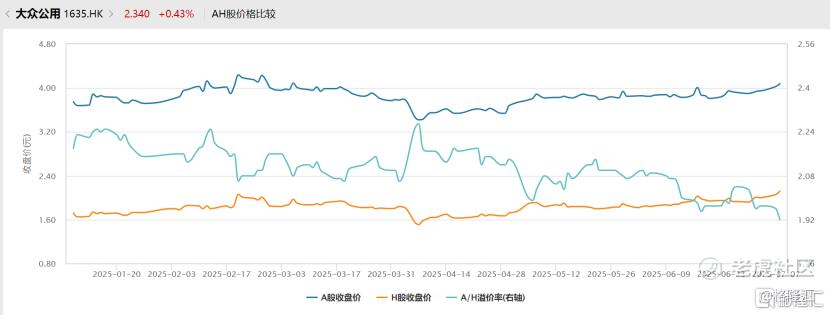 在持续收窄的价差环境中,大众公用的估值结构正蕴含一定修复潜力。尽管公司的AH价差在收窄,但当前A股较H股仍存在92%的溢价,这一溢价水平仍远高出整体平均水平。这对于投资者,尤其是价值型投资者而言,意味着其H股当前具备一定的相对估值优势和安全边际,存在潜在的“估值修复”与“价值再发现”双驱动投资机会。