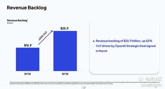 第一季度末,受 OpenAI 及微软合同推动,公司剩余履约义务高达 259 亿美元;理论上,新增 OpenAI 合同将把收入储备推高至 299 亿美元。