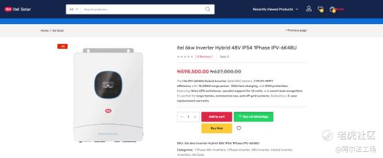 6KW混合动力型逆变器,图源:itel Solar官网