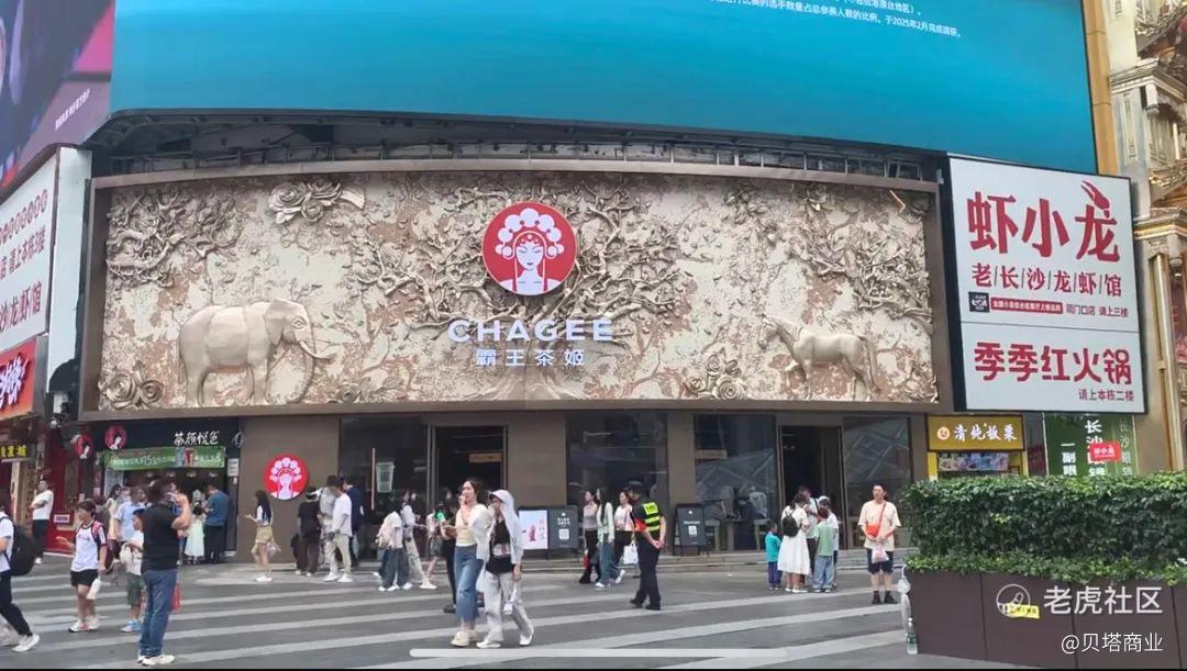 我是七月初去的长沙,在五一广场地铁站C口出来没多远,就看到霸王茶姬的新旗舰店巨型店招下就是茶颜悦色最热闹的门店之一。那一幕有点魔幻,两家店的人都排着长队,空气里除了奶茶的香味还有一丝剑拔弩张的意思。