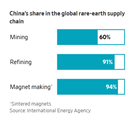 西方生产商长期以来一直抱怨中国利用其在稀土领域的主导地位来阻止竞争对手的崛起,有时通过向市场大量供应产品,有时则通过采取限制性的出口政策。北京禁止关键稀土技术的出口,并正在建立一份中国稀土领域科学家的名单,以确保他们不会在海外分享相关知识。