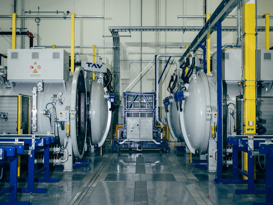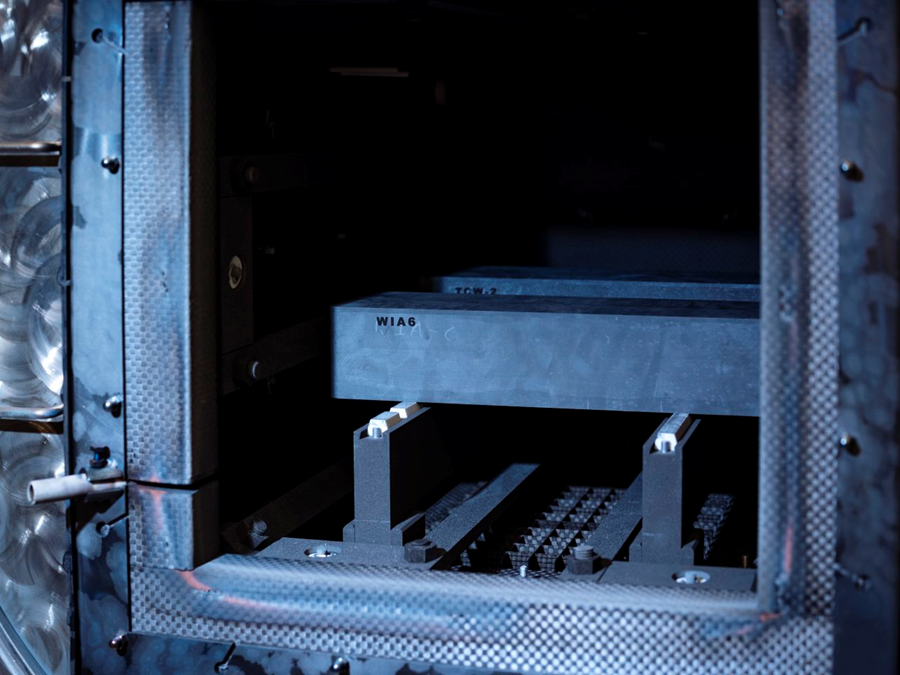 如今,这家公司正全力准备大规模商业化生产磁体。在其位于沃斯堡(Fort Worth)的工厂正门入口处,可以看到一个由红、白、蓝三色安全帽组成的巨大美国国旗。经过压制的稀土粉末被放置在耐热架上,然后送入高温炉中进行加工。