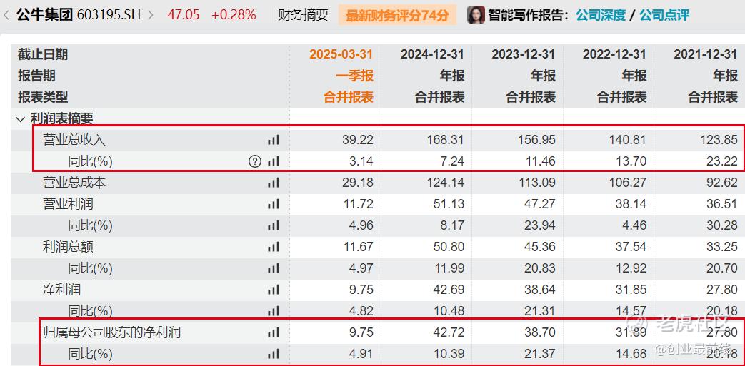 财报显示,2021年至2025年一季度,其营收增速从23.22%下滑至3.14%,归母净利润增速从20.18%下挫至4.91%。