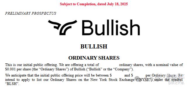 2025年7月18日,拥有顶级加密货币交易所的Bullish向美国证券交易委员会(SEC)公开提交招股书,拟在纽交所上市,股票代码为“BLSH”,承销商包括摩根大通、杰富瑞、花旗、德银等。
