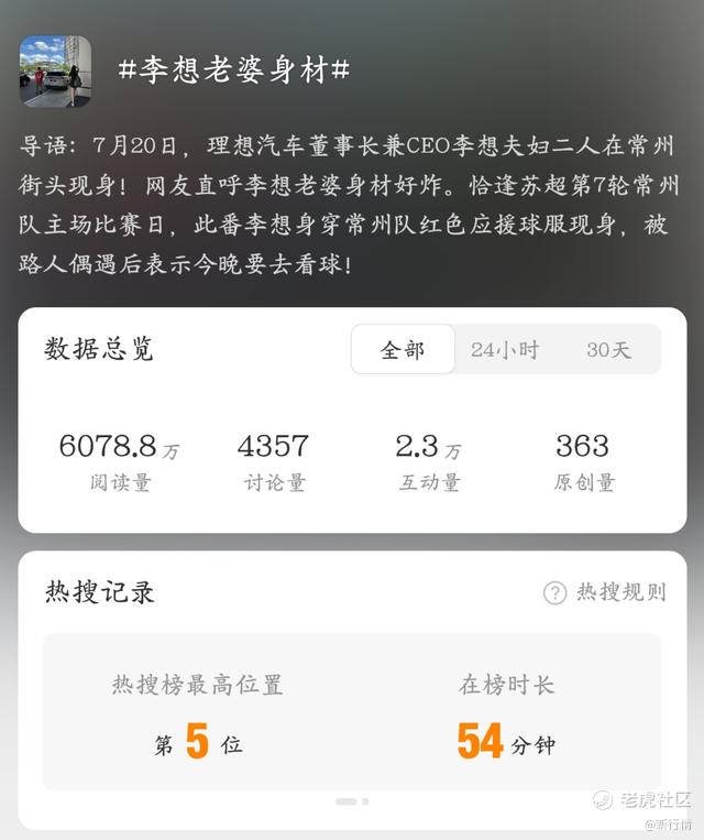 无论网友们对于李想老婆的身材上热搜是怎样的态度和观点,都给李想和理想i8带来了热度,或许也算是一种对于理想i8歪打正着的宣传。