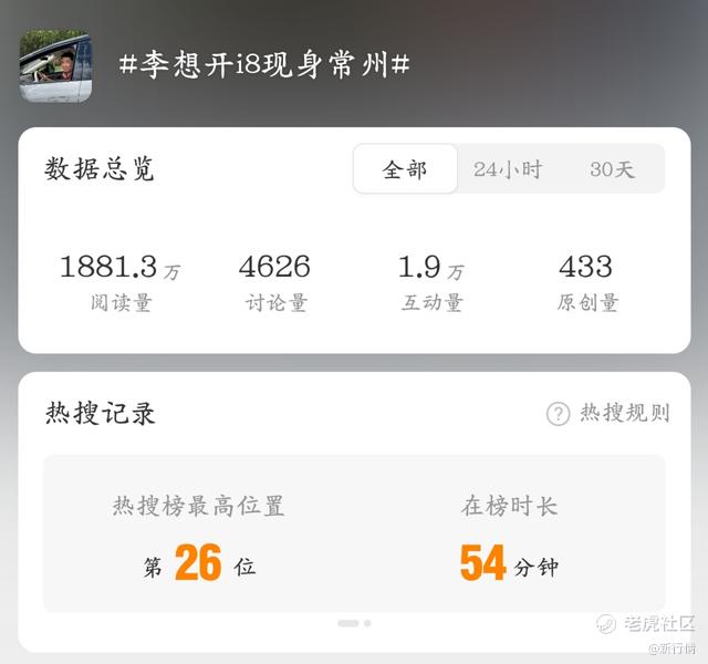 再到这次开着理想i8带着妻子去常州看苏超上热搜,李想似乎已经掌握了热搜的秘诀,也懂得了更注重宣传的方式方法。