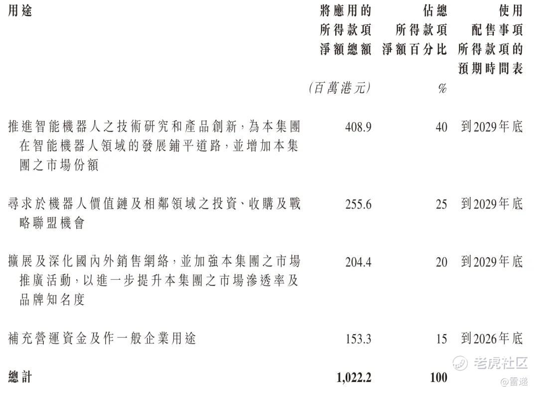 1,4.09亿元用于推进智能机器人领域技术研究及产品创新,以进一步增加集团市场份额,并为集团于智能机器人领域发展奠定基础;