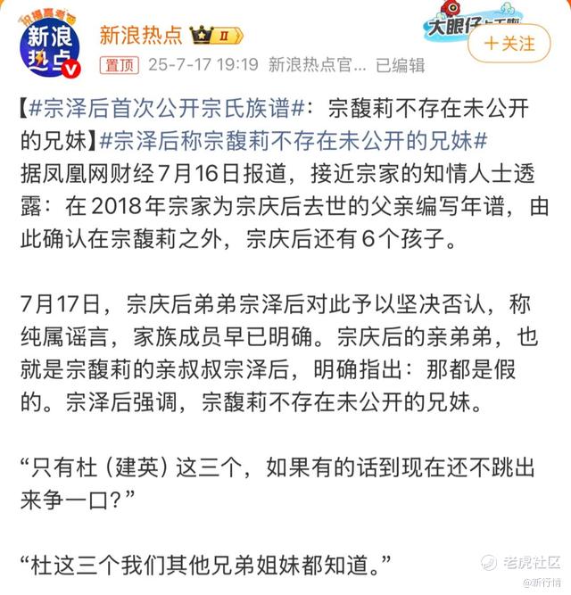 不过,有意思的是,宗泽后对于杜建英婚姻情况的说法与知情人士的说法一致,对于宗庆后私生子情况的说法却并不一致。