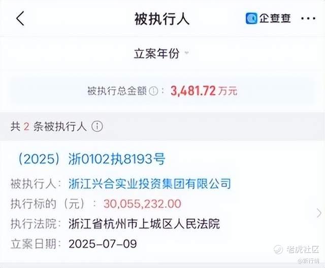 天眼查显示,杜建英名下的浙江兴合实业投资集团有限公司新增一则被执行人信息,执行标的3005万余元。此外,被执行人还包括陈教义、浙江省再生资源集团有限公司,执行法院为杭州市上城区人民法院。