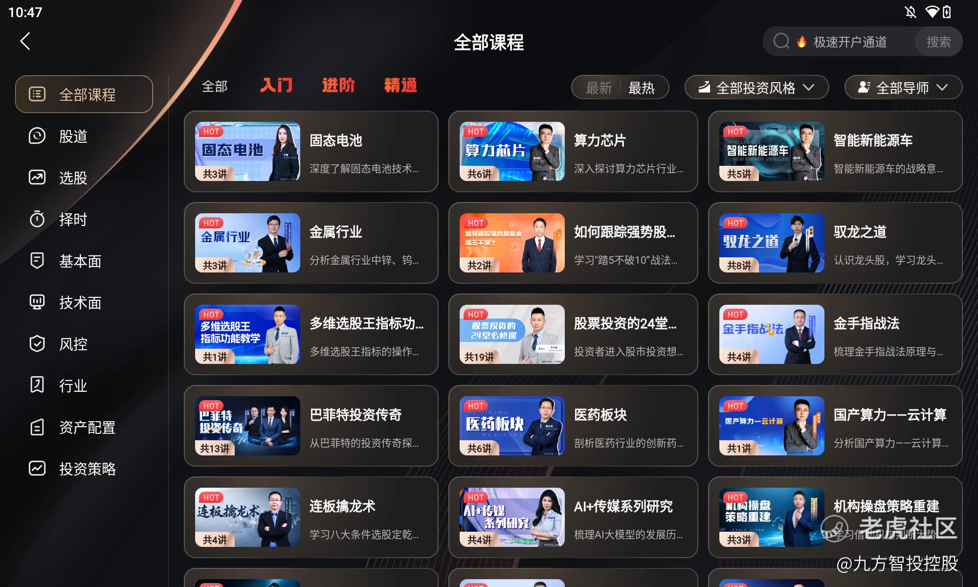 图:九方智投股票学习机课程页面