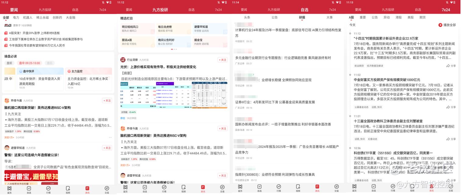 图:九方智投股票行情软件资讯页面