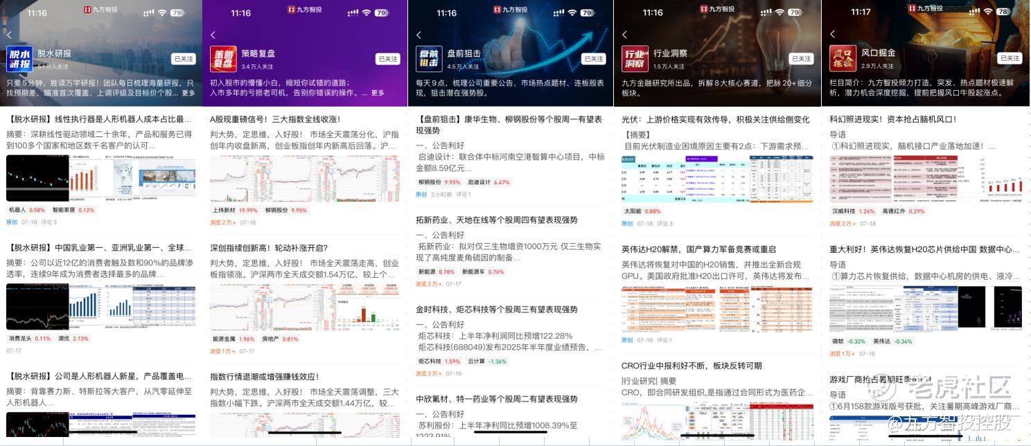 同时,九方金融研究所的投研成果也都落地在九方智投股票行情软件(APP+PC双端)以及股票学习机的资讯板块内,投资者可以登录软件找到【九方投研】板块。