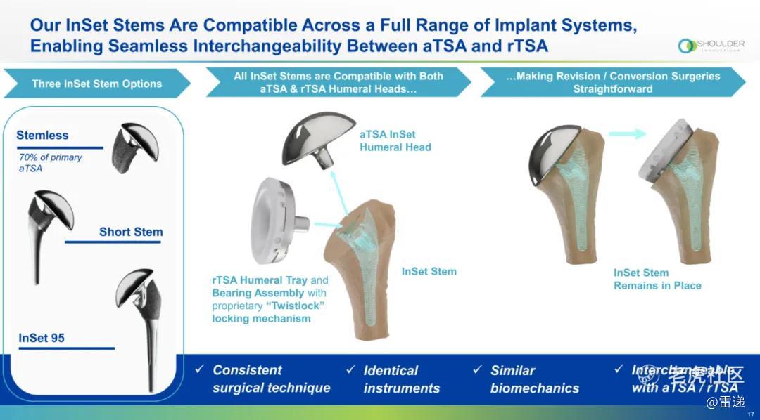 Shoulder Innovations的InSet™ 肩关节盂技术是该公司aTSA 和 rTSA植入系统的基础,其生物力学设计旨在减少骨植入物界面的应力,改善固定力学,增强稳定性,并减少微动,从而有效解决肩关节盂松动这一肩关节置换术的主要问题。两种植入系统均采用一致的手术技术和相同的高效双托盘器械系统。