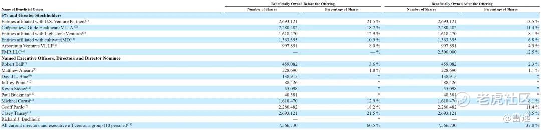 Lightstone Ventures持股8.1%,cultivate(MD)持股6.8%,Arboretum Ventures VI持股4.9%,FMR持股为12.5%。