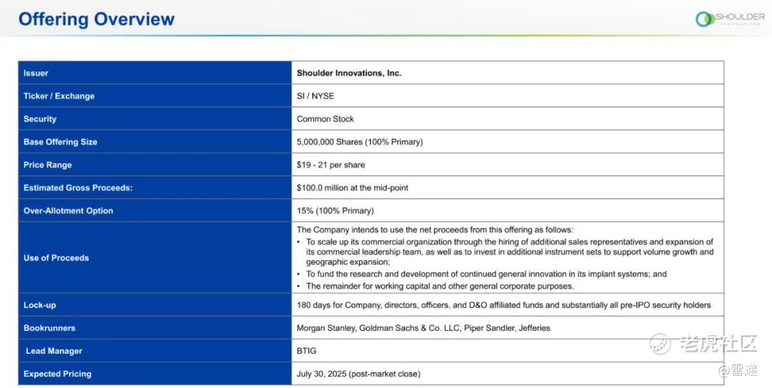 Shoulder Innovations发行区间为19美元到21美元,发行500万股,最高募资1.05亿美元。