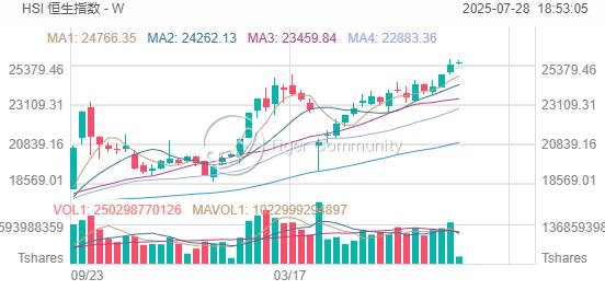 从同步性可见,我们知道的是短周期谷底趋向一致,而长周期则主导趋势方向。下面我们就来看恒生指数周线图的长周期。
