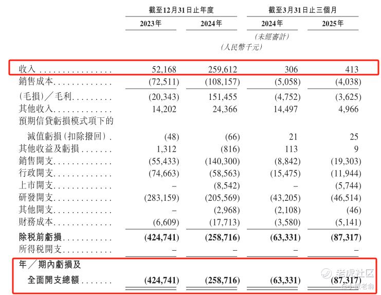 公司从2023~2024年营收分别是5216.8万、2.6亿,2024年营收同比增长397.65%;2023~2024年的净利润分别是-4.25亿、-2.59亿,2024年的净利润同比亏损收窄39.09%,亏损在收窄。