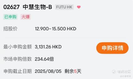 【港股打新】中慧生物-B,中信保荐及申购人气火爆