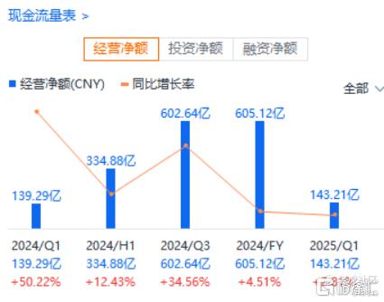 财报显示,2024年美的营业总收入达4091亿元,同比增长9.5%,归母净利润385亿元,同比增长14.3%,经营现金流创605亿元历史新高。而今年一季度,美的的业绩继续保持良好势头,一季度实现总收入1284亿元,同比增长20.6%,净利润124亿元,同比增长38.0%,净利率达到9.97%,同比提升1.45个百分点。