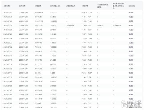 而在50-100亿元回购方案中,截至2025年7月31日,公司已回购2954.39万股A股,占总股本0.3850%,支付金额约21.27亿元。该方案在今年5月30日召开的2024年度股东大会获批准,回购用于依法注销减少注册资本及实施股权激励计划及(或)员工持股计划。