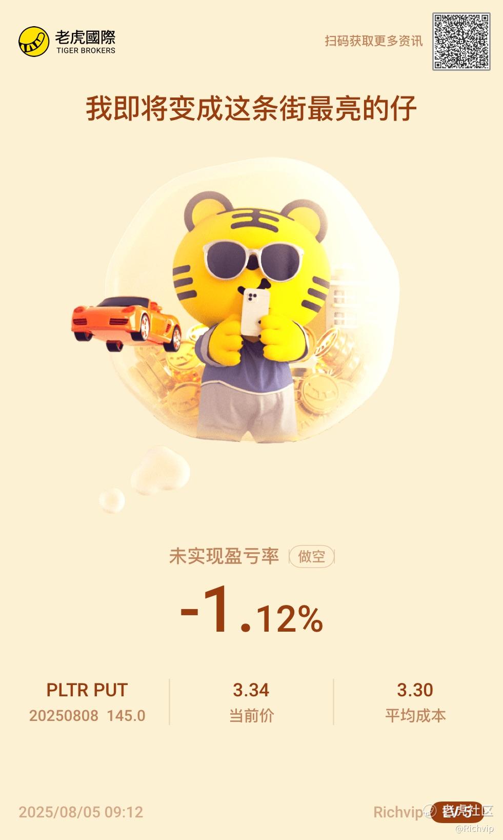 昨晚做了一手PLTR熊市看涨价差财报策略后,心理一直觉得不爽;暗道自己太谨慎了;倒嘴的肉都吐了不少出去,临晨两点又起来做了裸卖145put的财报策略。