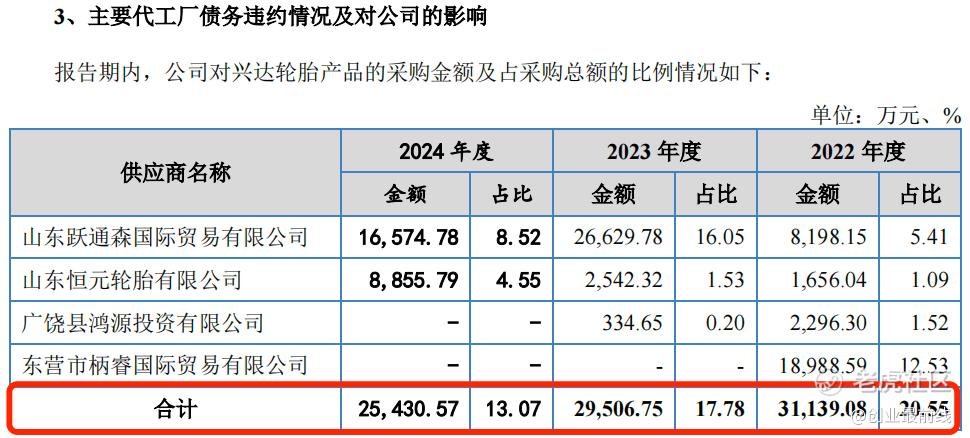 2020年开始,兴达轮胎的经营就陆续出现问题,泰凯英为何还要选择兴达轮胎作为主要供应商之一,且报告期内采购金额高达8.6亿元,这一点还需要泰凯英的进一步解释。