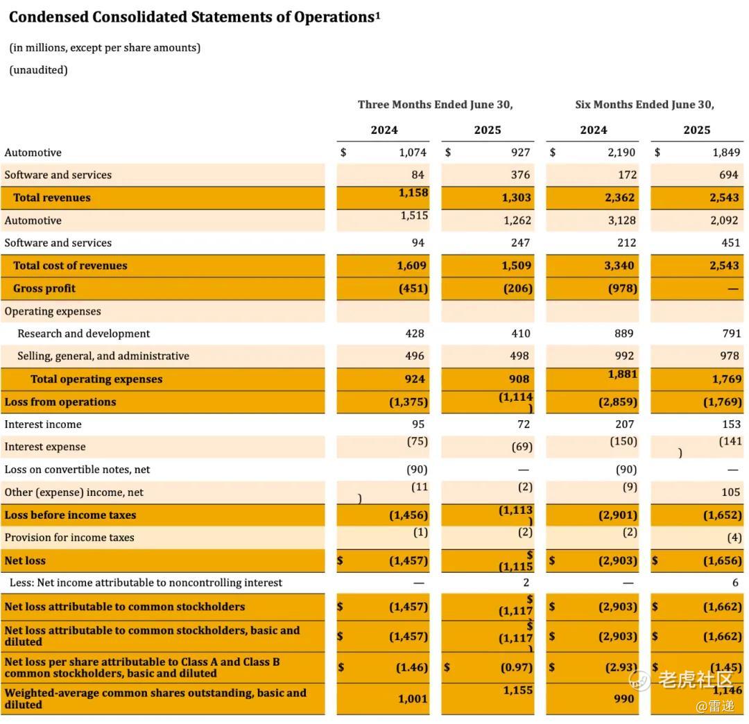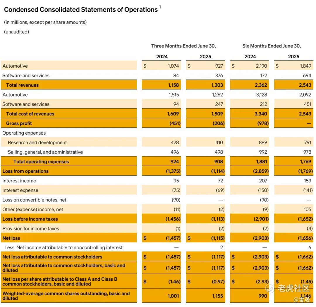 Rivian在2025年第二季度毛利润为2.06亿美元,上年同期的毛亏损为4.51亿美元;毛亏损率为16%,上年同期的毛亏损率为39%。