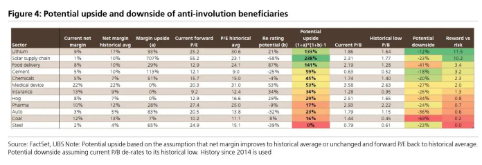瑞银中国股票策略:太阳能、化工和锂行业是“反内卷”主题最佳投资板块