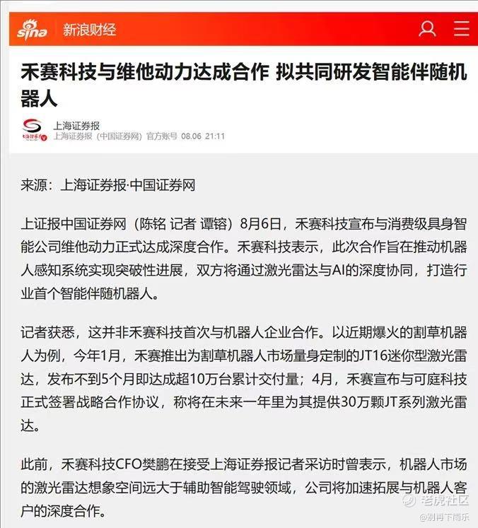 $禾赛(HSAI)$ 伴随机器人这个细分赛道,之前听得少,这次和禾赛合作才知道Vbot 维他动力推出行业首款智能伴随机器。这要用上禾赛车规级激光雷达,既能安全避障,又能实时规划路径,家庭、社区场景都能用。