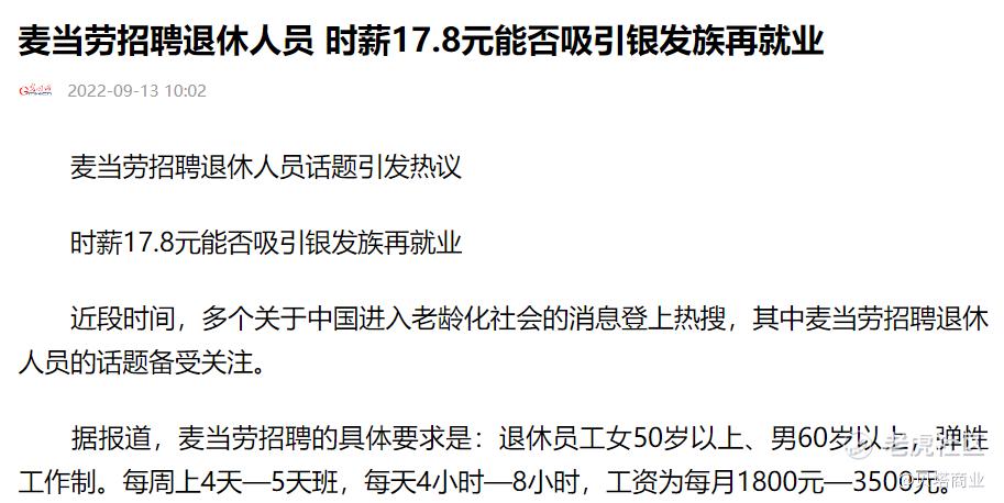很多人看到“麦当劳招退休员工”就下意识联想到:是不是“新规”来了企业怕花钱?