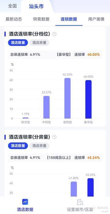 来源:驿镜,汕头酒店的总体连锁化率目前仅有4.91%