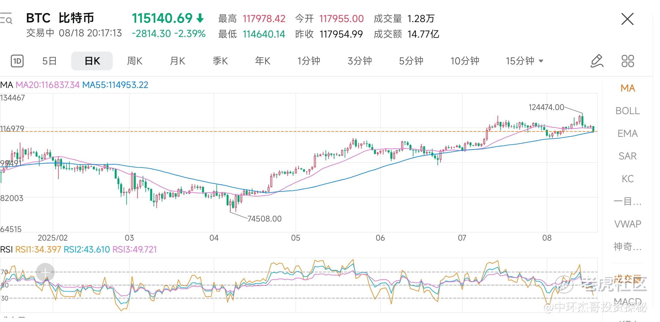 比特币,在加密货币里算是相对稳定的,但是与股票比还是波动更大的。要是从中长期的逻辑看,比特币一浪高过一浪,但是,中间波动较大。这是加密货币的特性,必须做到心中有数,目前来说,大盘已经运行到20天线附件,也接触到了55天线,相信里企稳已经不远。