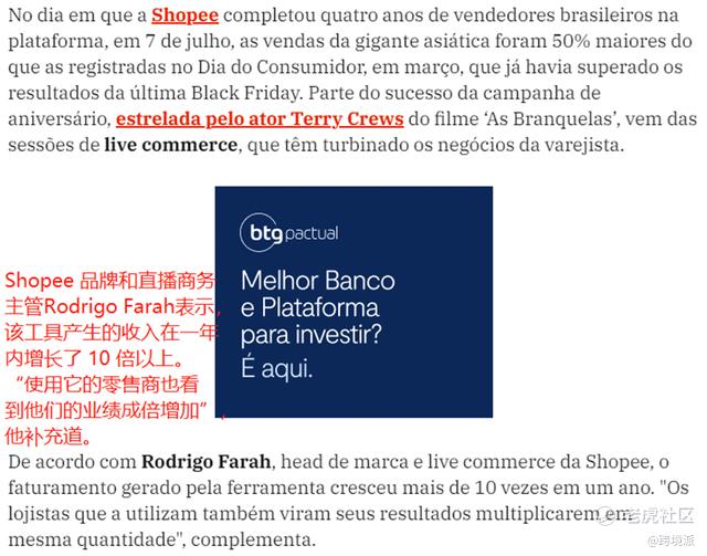 Shopee巴西站直播电商收入增长 图源:exame