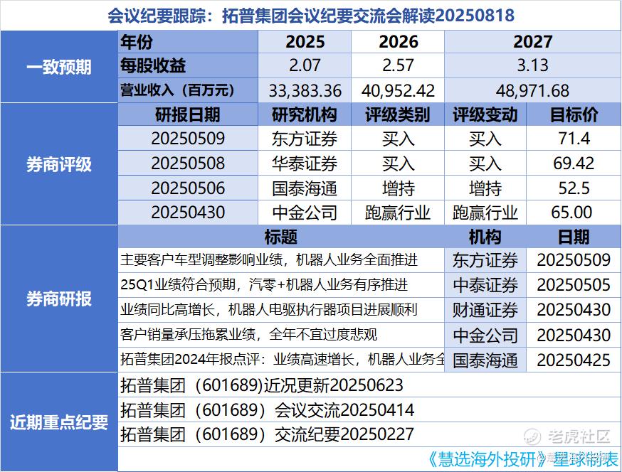会议纪要跟踪:拓普集团会议纪要交流会解读20250818