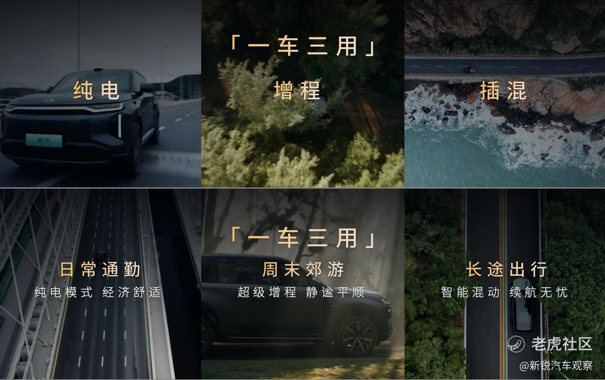 传祺向往S7采用了独有的可增程可插混能源模式,提供“纯电、插混、增程”三种选择,日常出行用纯电,周末郊游用增程,长途旅行用插混。涵盖了纯电的经济性、增程的静谧平顺、插混的高速馈电动力不衰减,最长综合续航1150km。