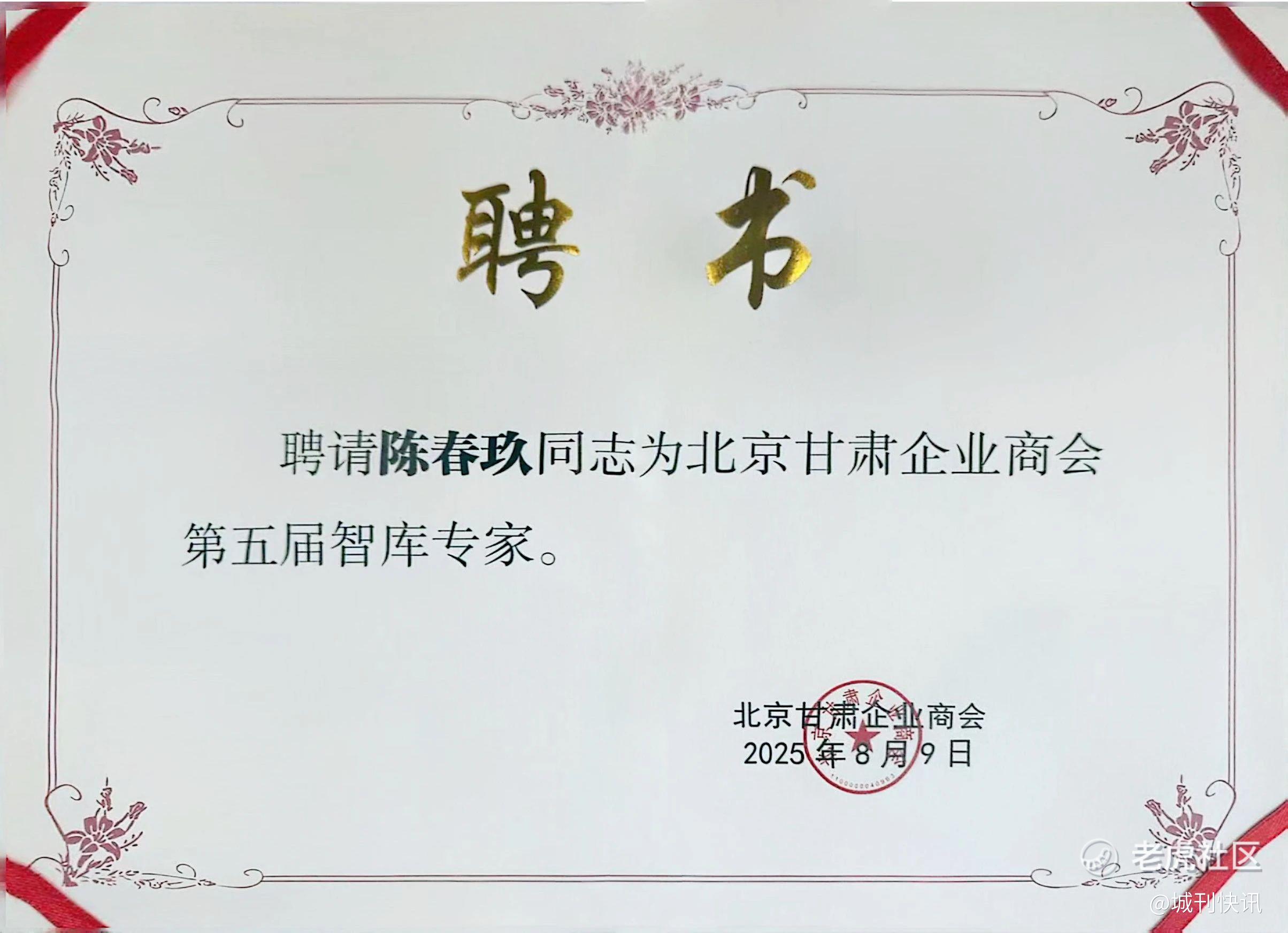 北京市异地商会第一联合党委书记,北京福建企业总商会党委书记、创会会长,北京通厦投资开发集团董事长陈春玖,总商会常务副会长、北京福建青年人才工作委员会主席,零以创投创始合伙人、中鸿基控股集团董事长郑连发,总商会常务副会长,北京福建青年人才工作委员会执行主席、北京善在量子科技集团创始人、董事长,易和成实业控股集团董事长陈玫辛(恩军),总商会副会长、海南誉成港生物科技有限公司总经理刘丽莉,北京福建青年人才工作委员会秘书长、北京通州宋庄艺术市集董事长、北京鸿安艾华酒店总经理、甘肃鸿安集团总经理林彬应邀出席活动。 陈春玖书记被聘任为北京甘肃企业商会第五届智库专家。