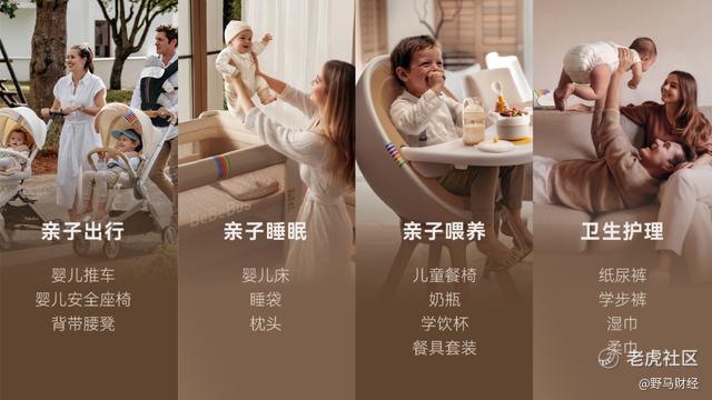 2019年不同集团推出BeBeBus品牌。推出BeBeBus时,不同集团就瞄准一线城市25-35岁高知女性,以 “高端化 + 场景化” 为核心,将婴儿车、安全座椅等传统品类升级为 “时尚单品”,通过小红书KOL种草快速打开市场。其主导的 “新生儿护脊四大件”(婴儿车、安全座椅、婴儿床、餐椅)成为行业标杆。