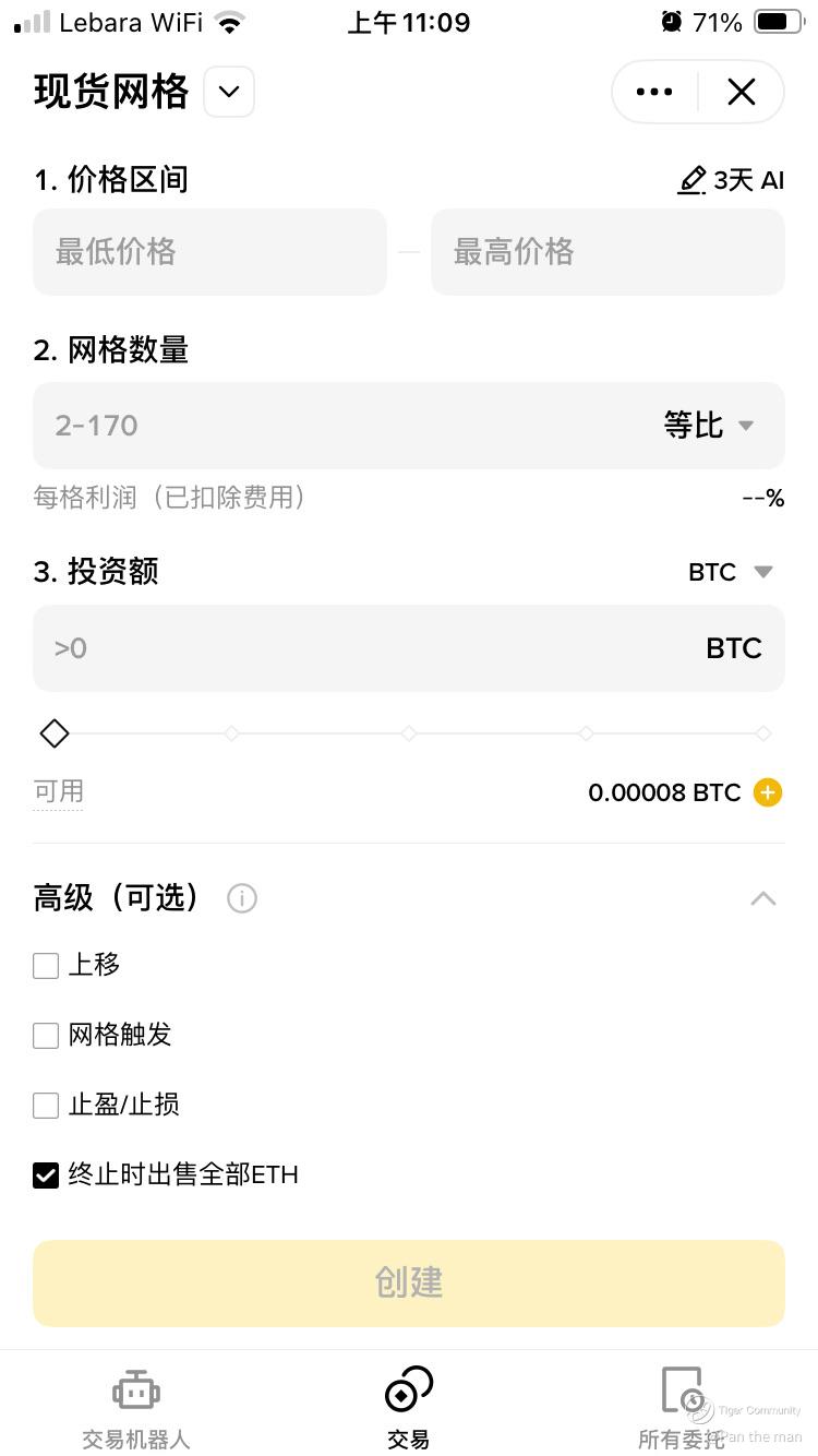 • 终止时卖出持仓:结束网格时,系统会自动卖出剩余仓位(例如ETH),实现资金回笼。