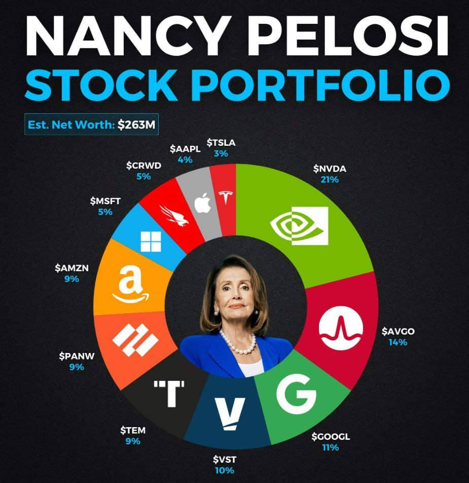 “国会山股神”佩洛西的最新投资组合揭晓,净资产约2.63亿美元,投资风格和之前并没有太大变化,仍然高度集中科技股(最大持仓英伟达21%,其次博通14%),前十大持仓就是一个完整的AI生态闭环-芯片端的英伟达、 $博通(AVGO)$ ,应用端的 $微软(MSFT)$ 、 $谷歌(GOOG)$ 、 $亚马逊(AMZN)$ 等,安全端的 $Pawnee Energy Ltd.(ISALF)$ , $CrowdStrike Holdings, Inc.(CRWD)$ ,然后再投一点AI需求侧的能源、电力,eg. $Vistra Energy Corp.(VST)$ 。自2014年以来其投资组合回报率高达736%,获利超1亿美元,在现在市场担忧“高估值科技股还撑不撑得住”的环境下,佩洛西还这么坚定科技股,指定是有点说法的[暗中观察]
