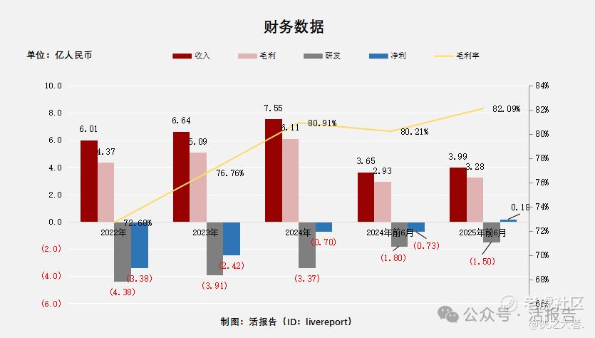 过去三年公司收入、毛利均稳步增长,最终毛利率提升至80%以上,研发费用有所减少,经调整净亏损逐步收窄。2025年上半年,公司财务迎来极大改善个,净利正式扭亏为盈!