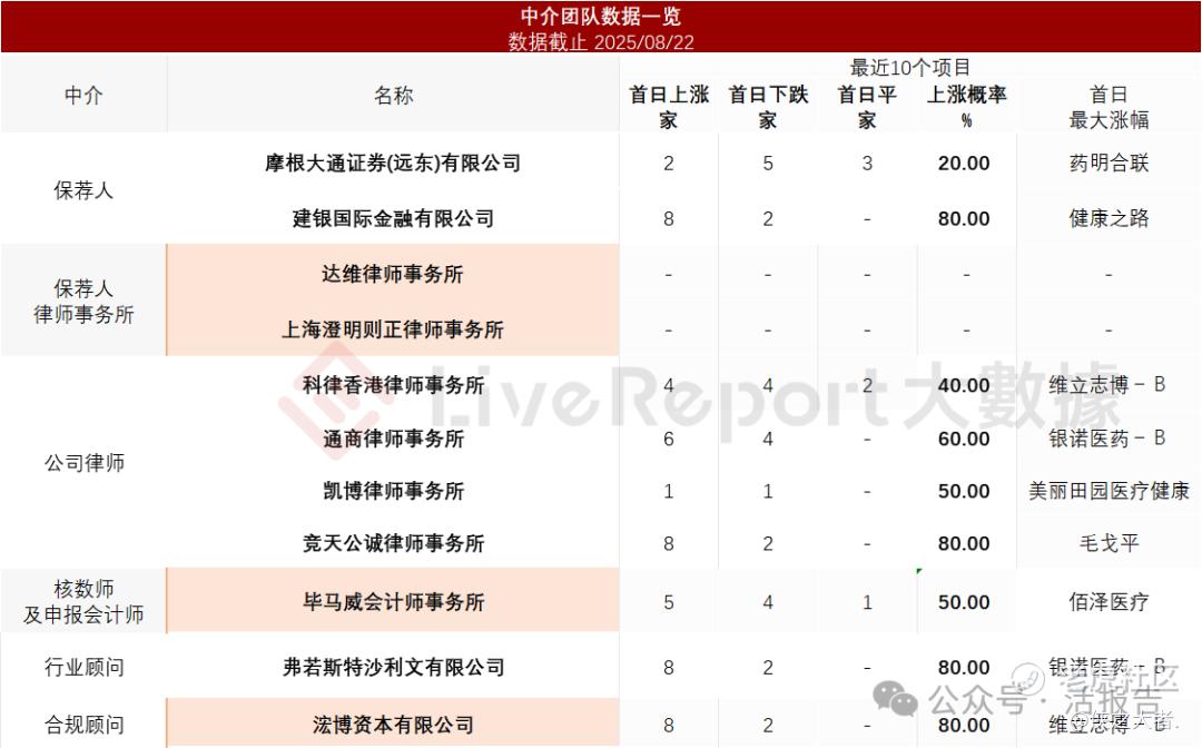 据**大数据统计,群核科技中介团队共计11家,其中保荐人2家,近10家保荐项目数据表现一般;公司律师共计4家,综合项目数据不尽如意。整体而言中介团队历史数据表现一般。
